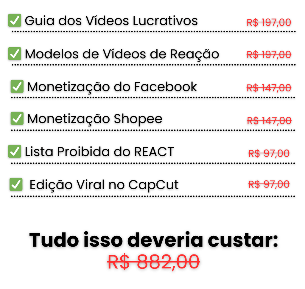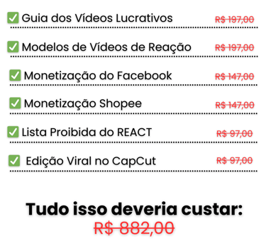 Mas hoje você tem acesso ao Guia dos Vídeos Lucrativos junto com todos os bônus por apenas apenas: