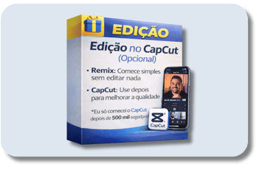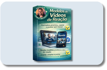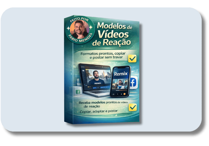 Você recebe formatos simples de vídeos de reação que funcionam no Remix. Nada de inventar ideia ou perder tempo pensando.