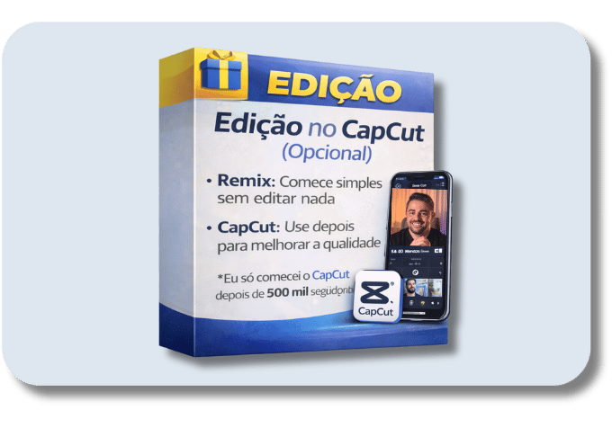 No começo, você não precisa editar nada. Você vai começar usando Remix, que é abrir, reagir e postar.Eu só comecei a usar o CapCut depois de passar dos 500 mil seguidores,