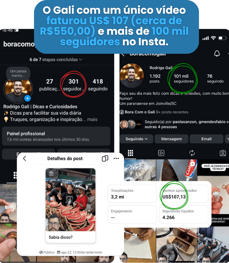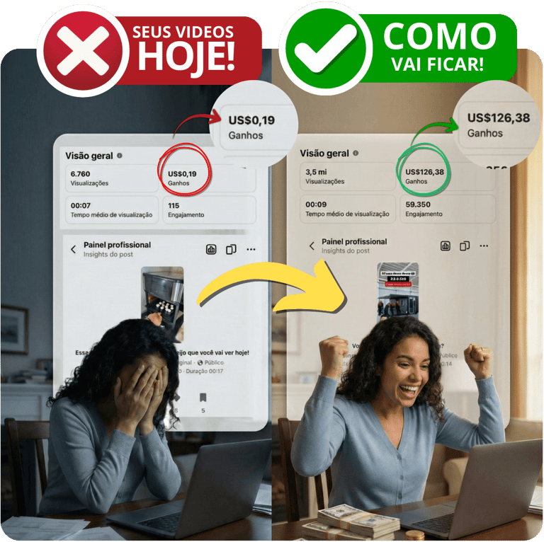 Nada de teoria. Nada de promessa vazia. Esses são resultados que eu mesmo construí, usando vídeos simples de reação